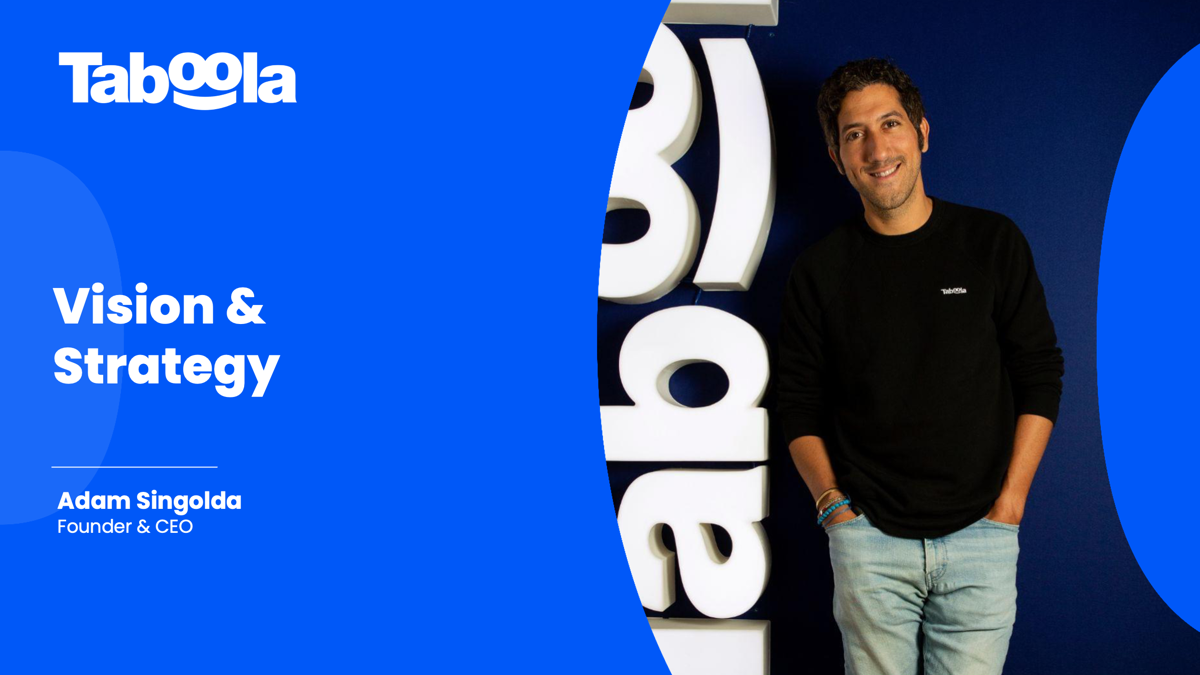 Taboola's 2025 Investor Day March 26, 2025 at 10:00 AM EDT Full Webcast Supporting Materials Investor Day Presentation 11 MB Vision & Strategy: Market Opportunity:Publisher Panel: Product Strategy: Advertiser Panel: Execution & GTM Strategy: Financial Overview: